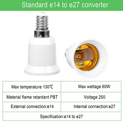 MATERIALE PBT ANTICOTTURA PREMIUM: Prodotto con materiale PBT ritardante di fiamma di alta qualità, il convertitore della lampadina da e14 a e27 è durevole, sicuro, resistente al calore e non ha cortocircuiti e non sporge, fornendo un servizio a lungo termine per te!