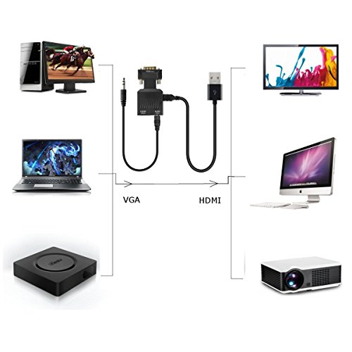 【 piccola soluzione di 】 gancio facile connettere il tuo modello anteriore computer con un connettore VGA a TV, monitor o proiettori compatibili con HDMI per lo streaming video, giocare o impostare lo scambio di contenuti. Nota:.. è necessario un cavo HDMI (venduto separatamente ASIN: b071d3 N24 W)