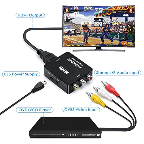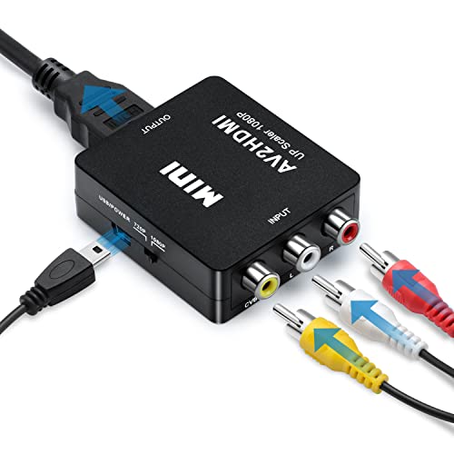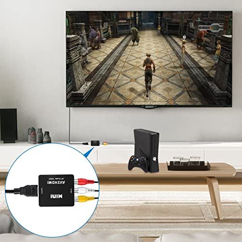 Convertitore da RCA a HDMI, Aolirot Adattatore RCA HDMI Mini AV a HDMI Convertitore RCA a HDMI 1080P Composito RCA CVBS a HDMI Convertitore con Cavo USB per PS2 Wii Xbox Gamecube N64 SNES VHS DVD