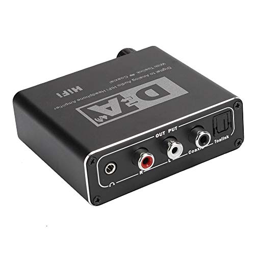 CONVERTITORE DIGITALE-ANALOGICO:Convertitore da ottico ad analogico questo convertitore DAC converte segnali audio digitali coassiali o Toslink in audio analogico sinistro/destro e può essere collegato a dispositivi esterni come amplificatori tramite standard per jack di tipo RCA, nonché cuffie da 3,5 mm.