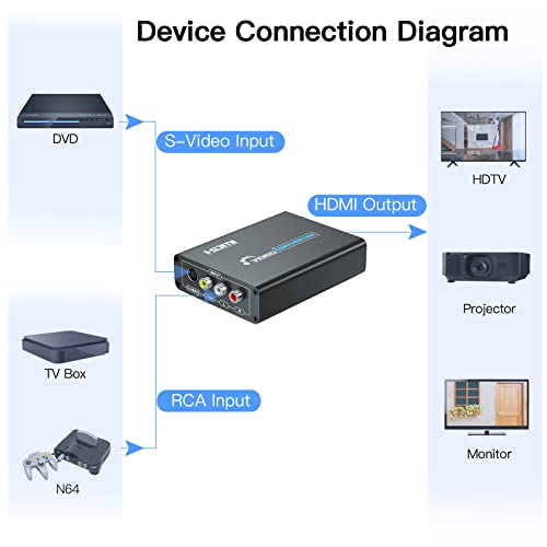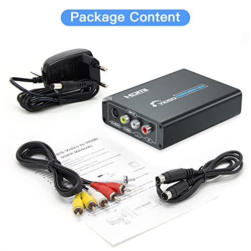 Convertitore S-Video a HDMI con cavi RCA e S-Video, 3RCA/Composite/CVBS/AV o S-Video+ R/ L Audio Input HDMI Out Convertitore per console DVD/STB/Game, su HDTV