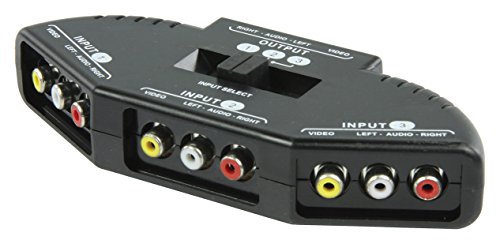 Selettore compatto AV a 3 vie. Ideale per collegare console audio o video a una TV o vcr.
