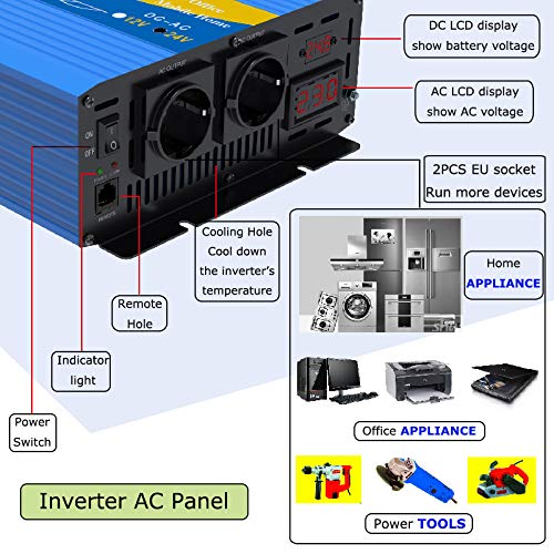 Installazione semplice: l'inverter da 2000 W è progettato per guidare, camper, roulotte, barche e lavori all'aperto, per collegare dispositivi a 220 V, in cui non è presente alcuna linea di alimentazione. Ideale per inst