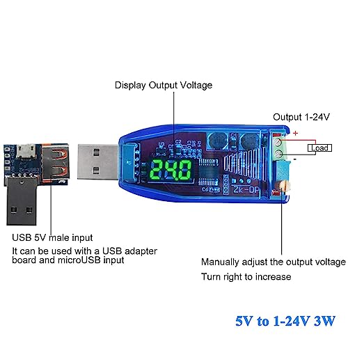 Finché c'è un caricabatterie per cellulare e un adattatore USB 5V, può emettere una tensione regolabile da 1 V a 24 V con una potenza di 3 W