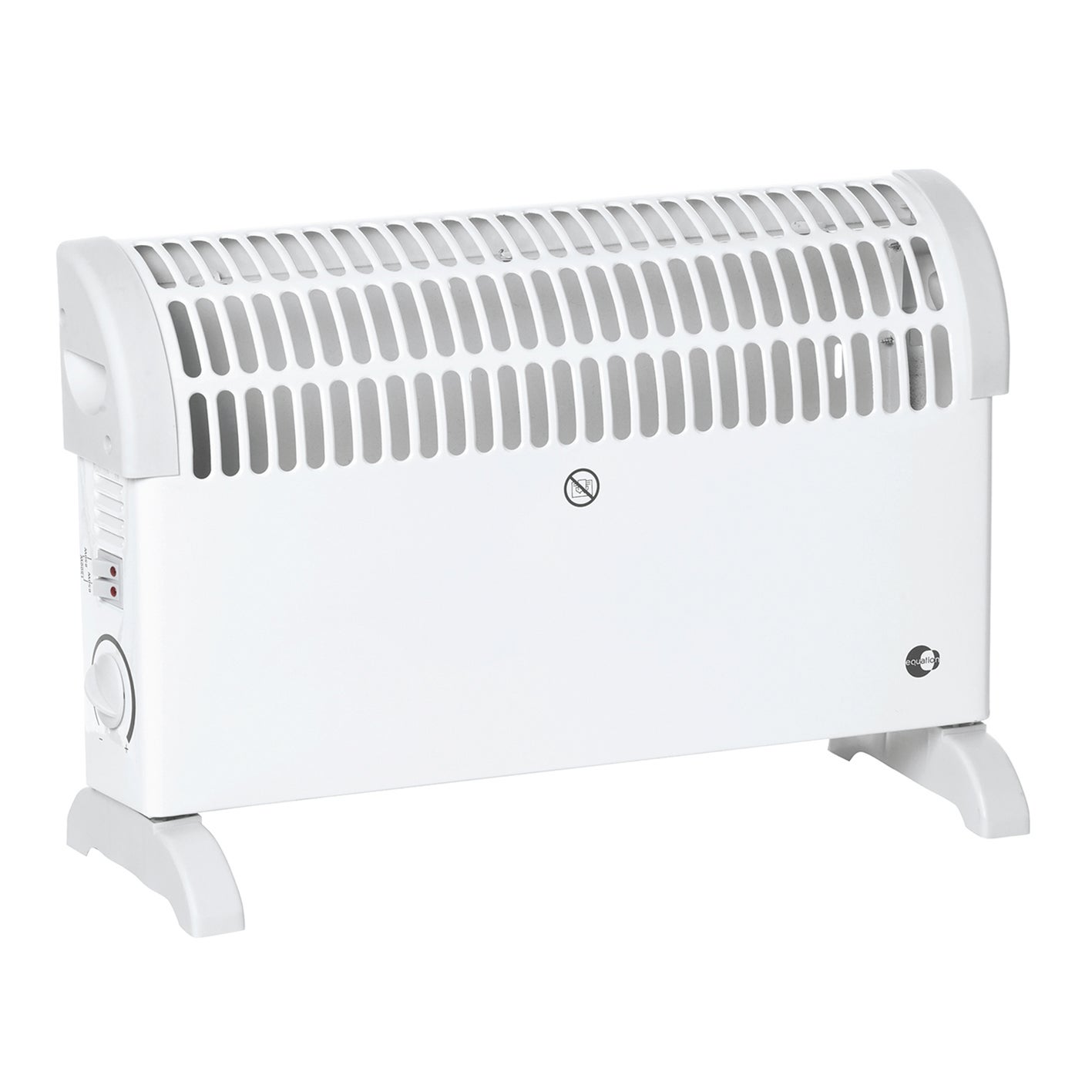 Termoconvettore Equation bianco. Potenza massima 1500W. Ideale per riscaldare un soggiorno, una camera da letto o un ufficio fino a 15 m².. Adatto per tre gradi di utilizzo grazie alla potenza regolabile in 3 impostazioni di riscaldamento: 650W per ambienti fino a 6.5 m², 850W per ambienti fino a 8.5 m² e 1500W per ambienti fino a 15 m².. Compatto e leggero, facile da spostare.. Facile da utilizzare grazie alle 2 manopole laterali per impostare temperatura e potenza.