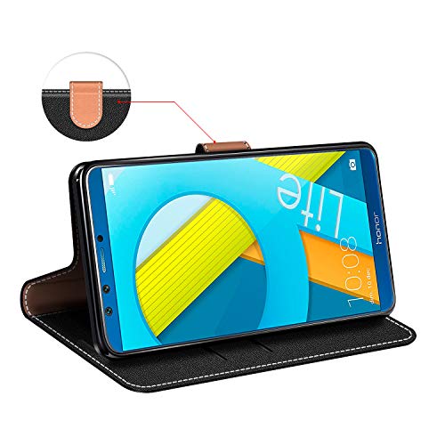 COODIO Custodia per Honor 9 Lite, Custodia in Pelle Honor 9 Lite, Cover a Libro Huawei P Smart Magnetica Portafoglio per Honor 9 Lite/Huawei P Smart Cover, Nero
