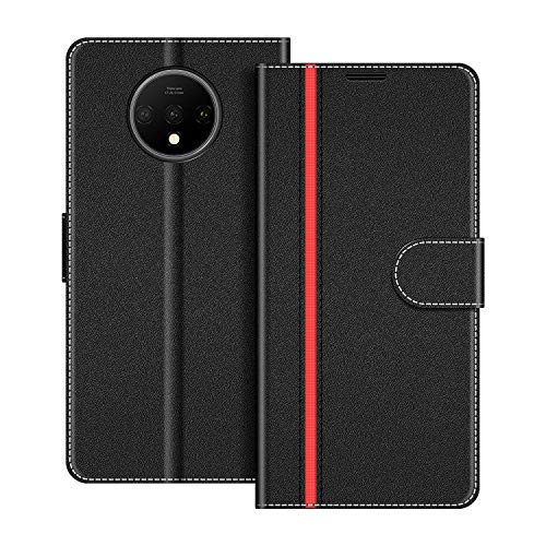 COODIO Custodia per OnePlus 7T, Custodia in Pelle OnePlus 7T, Cover a Libro OnePlus 7T Magnetica Portafoglio per OnePlus 7T Cover, Nero/Rosso
