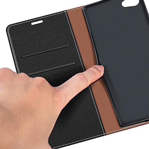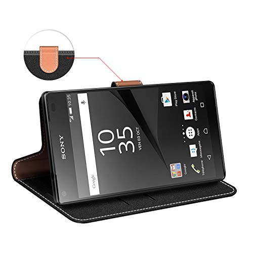 COODIO Custodia per Sony Xperia Z5 Compact, Custodia in Pelle Sony Xperia Z5 Compact, Cover a Libro Sony Xperia Z5 Compact Magnetica Portafoglio per Sony Xperia Z5 Compact Cover, Nero
