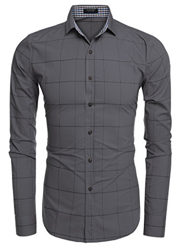 Coofandy, camicia casual da uomo, aderente a manica lunga, con bottoni Gray XX-Large