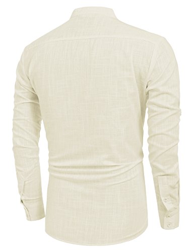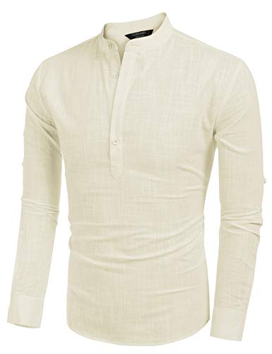 COOFANDY Camicia da uomo in cotone lino Henley manica lunga Hippie Casual Beach T Shirts, Beige, S