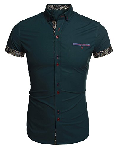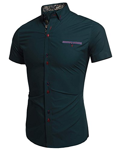 Coofandy Camicia Uomo Estiva Slim Fit Polo Casual Verde