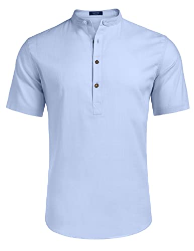Coofandy Camicia Camicia Estiva Manica Corta da Uomo Camicia Casual da Uomo Camicia di Lino Camicie da Uomo Regular Fit Sky Blue S