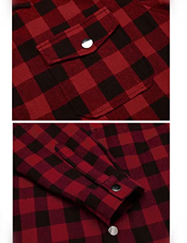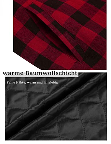 Coofandy Camicia da Uomo con Fodera Scozzese Camicia da Boscaiolo Invernale Giacca da Camicia Termica Cappotto Giacca Invernale (S, Rosso)