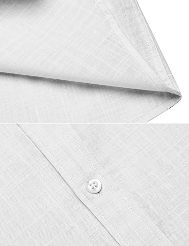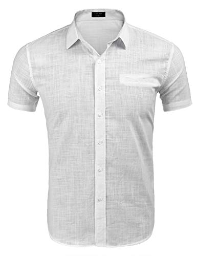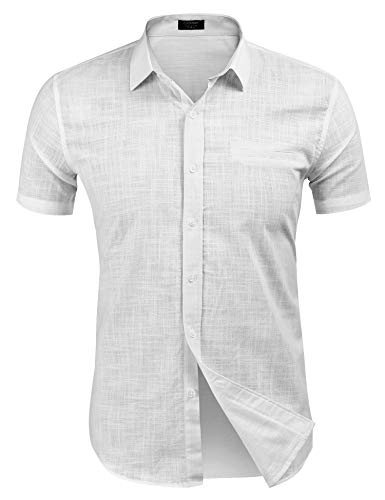 COOFANDY Camicia da Uomo Camicia di Lino a Maniche Corte Camicia Casual Estiva Tinta Unita Camicie Slim Fit Camicie di Lino Bianco S