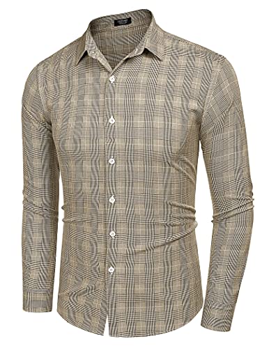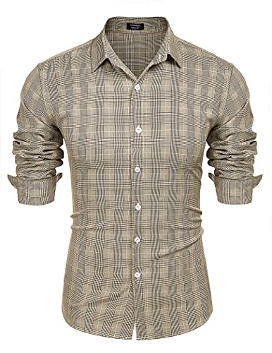 COOFANDY Camicia da uomo a maniche lunghe, casual, con bottoni, slim fit, business, Kaki scuro, L
