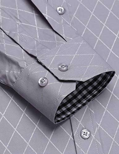 COOFANDY Camicia da uomo a maniche lunghe, slim fit, a quadretti, a quadretti, a maniche lunghe, per il tempo libero, per le feste, per gli uomini, grigio chiaro, M