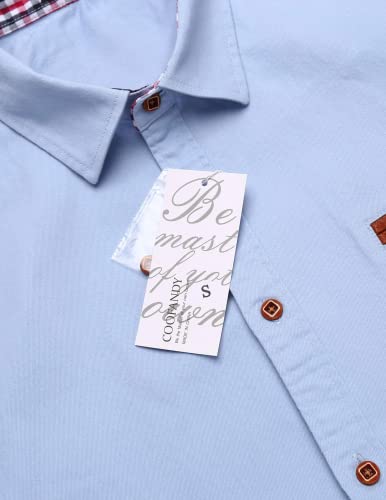 Coofandy Camicie da Uomo Camicia di Jeans a Maniche Corte Camicia Denim a Quadri Slim Fit T-Shirt Camicia Casual a Maniche Corte Casual per Uomo Clear Blue S