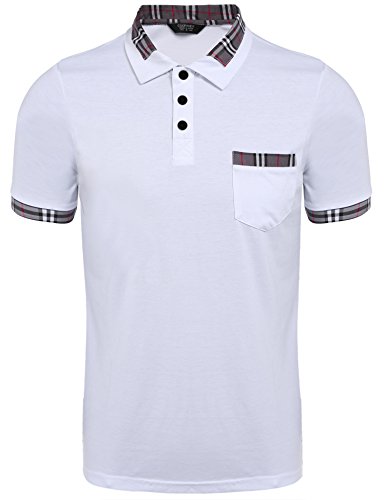 Coofandy Uomo Polo Casual Collo Check Sottile Contrasto Polo Manica Corta Slim