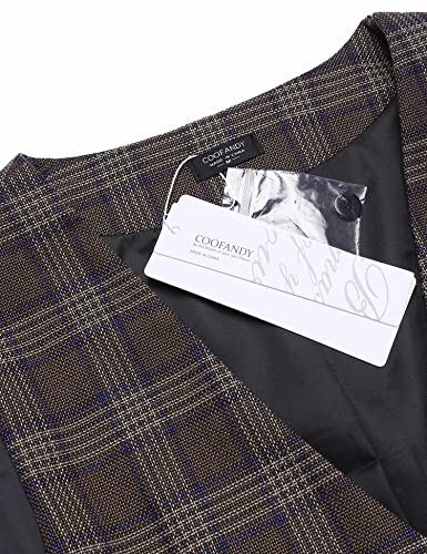 COOFANDY Gilet da uomo con scollo a V, senza maniche, slim fit, smoking frack, formale, classico, casual, per matrimoni, plaid kaki, M