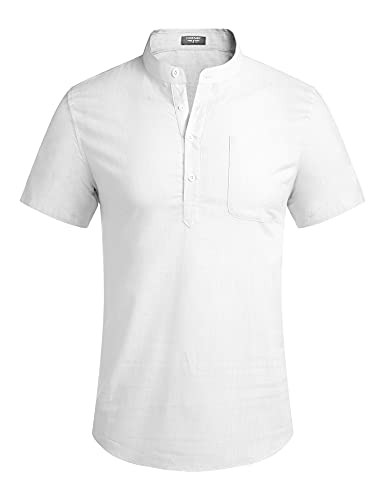 COOFANDY Henley, maglietta da uomo in cotone e lino, a maniche lunghe, stile hippie casual bianco L