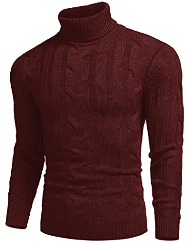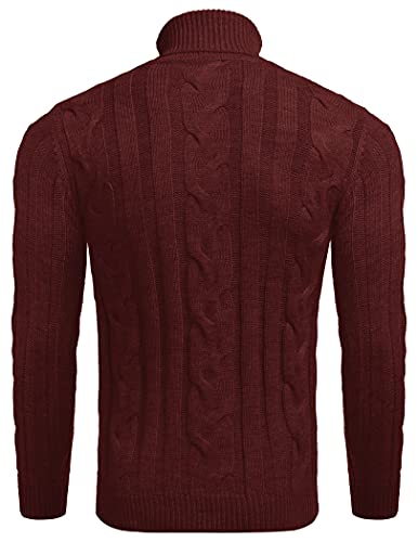 COOFANDY Maglione da uomo slim fit con collo alto, rosso scuro, M