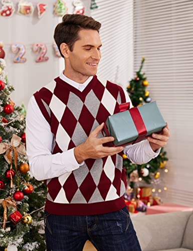 COOFANDY Maglione da uomo a quadretti, senza maniche, con scollo a V, in cotone, per l'inverno, rosso vivo, XXL