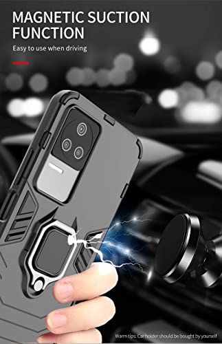 COOKD Cover per Xiaomi Poco F4, TPU/PC Dual Layer Hybrid Armor Custodia con Supporto Magnetico Auto, Silicone Cover con 360° Girevole Anello,Antiurto Protezione Shell, Nero