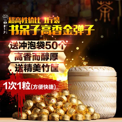 Pu'er Tea Cooked Tea Long Incense Golden Marble Mini Small Tuo Luzhou Flavor 500G with Exquisite Bamboo Basket