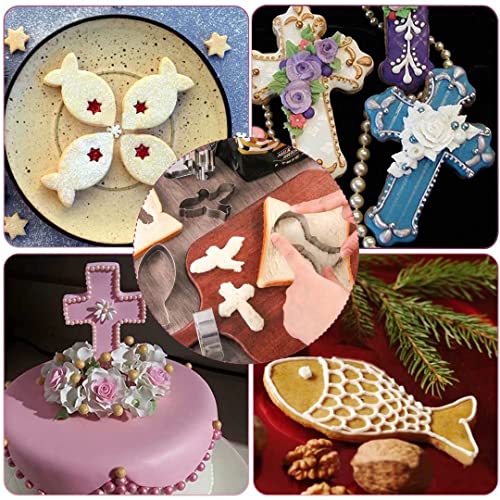 8PCS Cookie Cutters a Forma di Santa Croce,Formine per Biscotti a Forma di Pesce,Tagliabiscotti Croce,Formine Biscotti di Pesce con 48Pezzi Sticker,per Comunione,Cresima,Battesimo