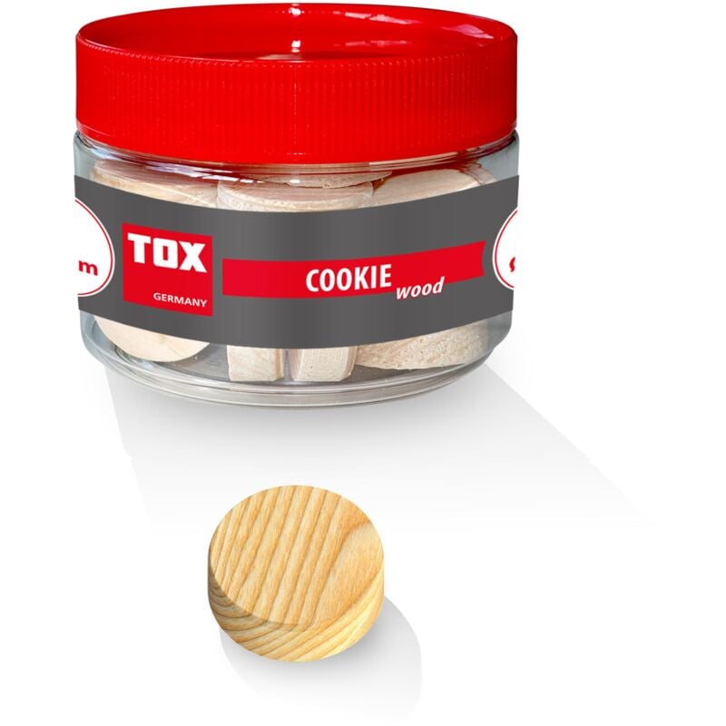 Le tavole trasversali Cookie Wood sono realizzate in abete rosso e sono ideali per chiudere i fori dei rami, i fori delle viti antiestetici, per coprire i fori delle viti nelle tavole di legno, nei mobili in legno massiccio, ecc. o in modo creativo: anche come pezzi da gioco per i giochi da tavolo. Le piastrelle sono disponibili in diversi diametri per un'elevata precisione di montaggio: 15 mm, 20 mm, 25 mm, 30 mm, 35 mm, 40 mm, 45 mm e 50 mm. Il Cookie Wood è smussato su un lato per facilitare la lavorazione e si adatta perfettamente alla struttura in legno esistente. Applicazione facile e veloce Alta precisione di adattamento Parzialmente invisibile Disponibile in 8 taglie La legna per biscotti TOX viene fornita ordinata per tipo nel pratico barattolo rotondo TOX: questo garantisce che tutto sia riposto ordinatamente, possa essere trasportato in modo sicuro e sia rapidamente a portata di mano. Sia i barattoli che la scatola di assortimento sono resistenti, proteggono dalla polvere e