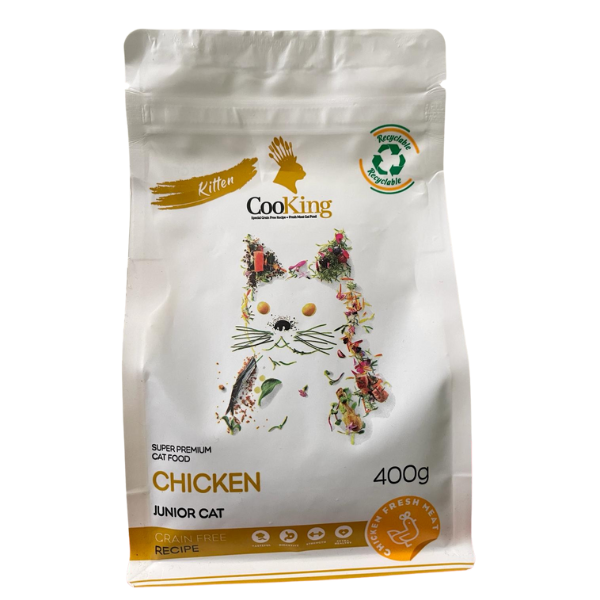 CooKing Cat Grain Free Kitten All Breed con Pollo è l'alimento secco senza cereali, preparato per il tuo gattino di tutte le taglie. Ricetta creata per deliziare il palato dei felini più esigenti, sin dai primi mesi di vita: un menù fresco, gustoso e nutriente che fornisce la nutrizione di cui necessita. Non perderti il fantastico Spot video dedicato al brand, a cura del team .it e ricorda di taggarci sui social quando "scatola" bussa alla tua porta! Caratteristiche principali dell'alimento secco per gatti CooKing alimento secco dai sapori intensi e gustosi, che conquisteranno il tuo gattino sin dalla prima fase di vita indicato per soddisfare tutte le esigenze nutrizionali del gattino (Kitten) dallo svezzamento ad un anno di età ideale per gattini di tutte le taglie (All Breed) formulato da un team di nutrizionisti e veterinari per fornire al tuo animale domestico cibo fresco e nutritivo senza cereali (Grain free Formula) e con la giusta proporzione di proteine, carboidrati e verdure ricetta equilibrata e bilanciata, ricca di proteine informazioni sull'etichettatura ambientale: pack 100% riciclabili (segui l'ordinanza del tuo Comune) Pet più energici, forti e felici: CooKing cibo per gattini. CooKing prepara tutte le sue ricette con ingredienti naturali di prima qualità. Menù privi di cereali, preparati con carne, pesce e verdure fresche. Un team di veterinari e nutrizionisti, ha studiato e formulato ogni ricetta del nuovo brand in esclusiva su , offrendo una dieta equilibrata dal punto di vista nutritivo e adattata alle esigenze del tuo animale domestico, oltre a fornire un menu gustoso e appetitoso, creato per la gioia di cani e gatti. Il cibo viene preparato e cucinato in un moderno stabilimento di produzione, in cui vengono selezionati solo i migliori ingredienti freschi per ottenere un maggiore gusto e valore nutrizionale. I rigorosi protocolli di controllo qualità implementati nel processo garantiscono prodotti di qualità ottimale. Consigli per la somministra