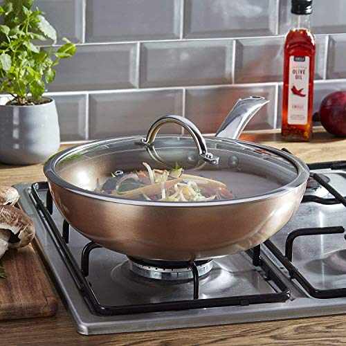 Cooks Professional Wok Antiaderente con Coperchio pentola Effetto Rame 28cm Rivestimento in Ceramica Cerata Alluminio, Elettrico, induzione e Piano Cottura in Ceramica Compatibile