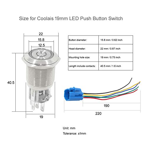 ★ Foro di fissaggio per pulsante di pressione: 19 mm, corrente nominale e tensione nominale: 5 A/12 V.