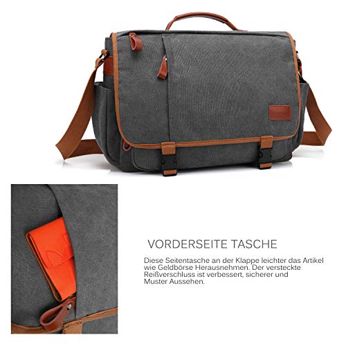 CoolBELL Borse e Messenger per PC portatili 17.3 Pollici Borsa a Tracolla Borsa per Laptop Ventiquattrore per Donne/Uomo/Viaggi/Affari/Lavoro/Scuola/Università (Tela Grigio Scuro)