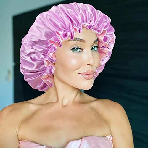Protegge i capelli: le cuffie da bagno in raso possono ridurre la perdita di capelli, design sovradimensionato, ridurre i grovigli e nodi, rendere i capelli più comodi e lisci, e proteggere efficacemente i capelli, se hai una testa grande e lunghi capelli ricci. Questa cuffia per dormire fa il compito di proteggere i capelli durante il sonno.