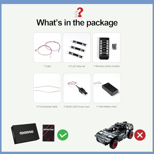Cooldac Kit di luci a LED per Lego 42160 Technic Audi RS Q e-tron, telecomando creativo set di luci decorative compatibili con Lego 42160 Audi RS Q e-tron, modello Lego non incluso