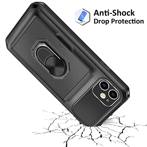 Coolden Cover per iPhone 11 Custodia Case Portafoglio con Porta Carte Supporto di Anello Cover Armor Case Militare Antiurto Bumper Cover Heavy Duty Protettiva Custodia Case per iPhone 11 Nero