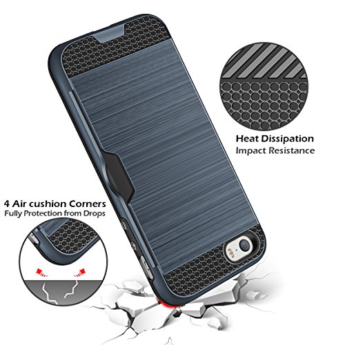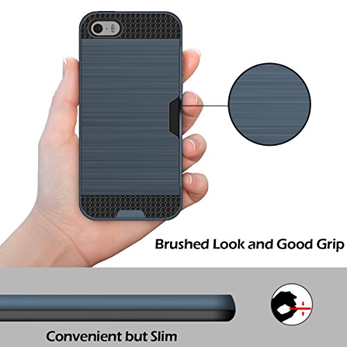 Coolden iPhone 5 5S se Custodia, Dual Layer Antiurto iPhone 5S Custodia in Pelle Phone Cases Spazzolato Dura con Porta Carte Anti-graffio Resistente Custodia Protettiva per iPhone 5 5S se (Navy)