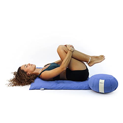 COOLDOT Cuscino Yoga Zafu rotondo meditazione sfoderabile, altezza 15 cm, rivestimento esterno in tela di cotone 100% naturale, imbottitura farro coltivazione biologica, facile da lavare (Blu)