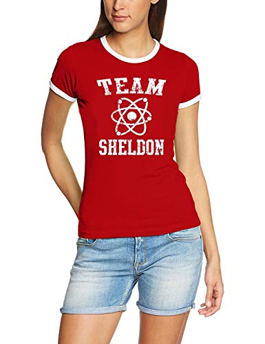 Coole-Fun-T-Shirts T-Shirt Team Sheldon-Big Bang Theory Vintage Rigi, Rosso (Rot Damen), L Donna