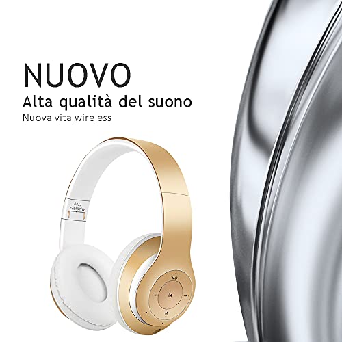 【Design ergonomico】 Cuffie Cuffie Bluetooth con cuscinetti auricolari con memoria proteica, archetto regolabile e cuffie rotonde per un migliore ascolto in viaggio, al lavoro e ovunque.