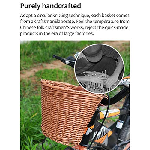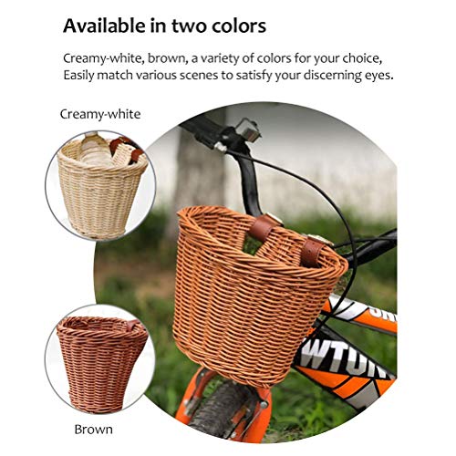 Coolga Cestino per Bici in Vimini per Bambini con Cinghie in Pelle, portaoggetti per cestello in Rattan per Manubrio Anteriore per Bicicletta