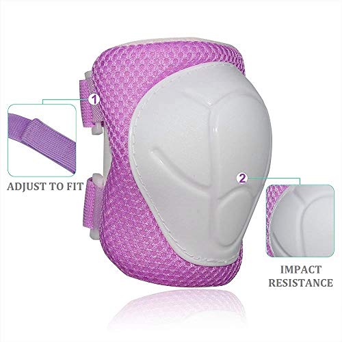 COOLGO Protezioni Bici Ginocchiere Set per Bambini 15-30 KGS, 6 Pezzi Regolabili Gomiti Ginocchiere Protettive Polsi per Bambina Bambino per Pattini a Rotelle Skateboard Roller Ciclismo (Viola)