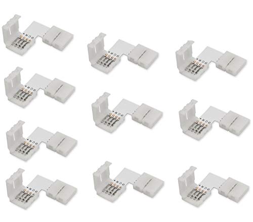 Cooligg, set da 10 a forma di L, LED RGB, connettore angolare a 4 pin, 10 mm con clip, connettore per strisce LED SMD 5050, 3528, 2835, connettori rapidi, accessori LED senza saldatura (raccordo angolare a forma di L/10 mm)