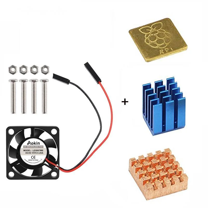 5V / 3.3V Cooling Fan with Screws + Heat Sink 1 Aluminum with 2 Copper for Raspberry Pi 4 / Pi 3 Model B RPI B