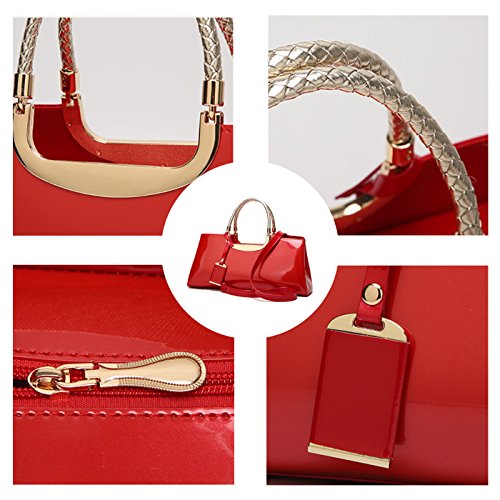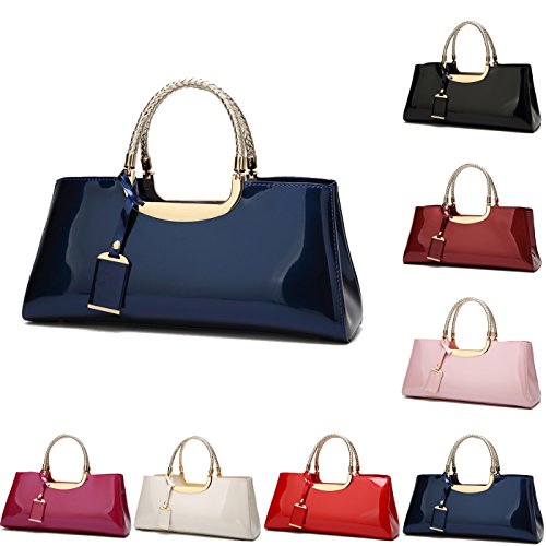 Coolives Borsa a mano con Tracolla Manici Intrecciato da Donna in Pelle Verniciata PU Borse a Spalla per Signora Blu reale