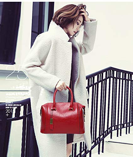 Coolives Donna Borsa a mano con Tracolla in Pelle PU Boston Borsa a Spalla Vintage Borse Elegant Borsetta Rosso