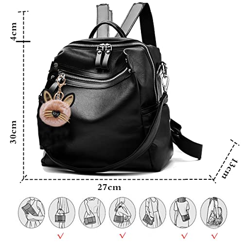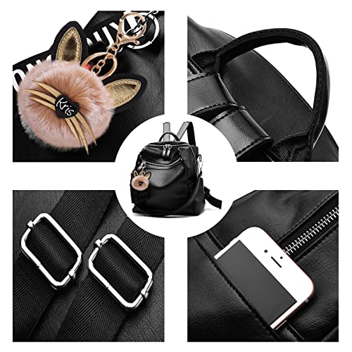 Coolives Zaino con Tracolla da Donna Secchiello Borsa a Zainetto Zaini Casual in Pelle PU per Ragazza Adolescenziale Nero