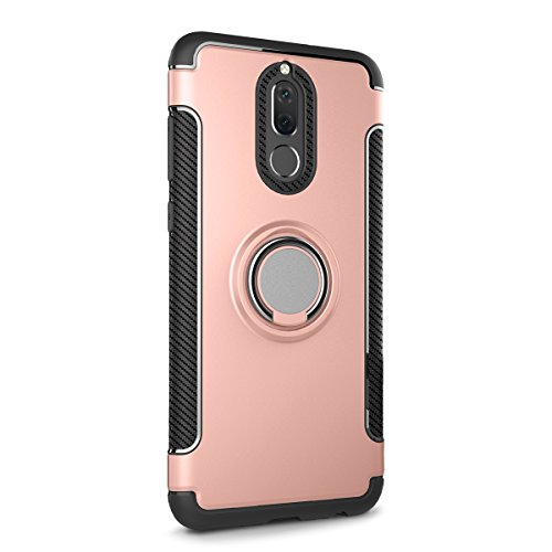 COOLKE Asportabile 2 in 1 Resistente Agli Urti TPU Case +PC Design 360 Grado rotazione Body Anello Custodia Caso Shell cover Protective con Supporto Stent per huawei mate 10 lite- Rose oro