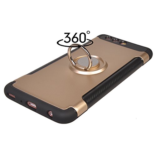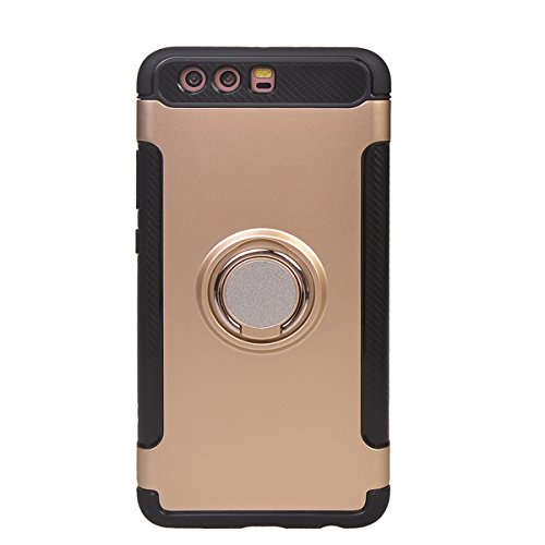 COOLKE Asportabile 2 in 1 Resistente agli Urti TPU Case +PC Design 360 Grado Rotazione Body Anello Custodia Caso Shell Cover Protective con Supporto Stent per Huawei p10 Plus - Oro